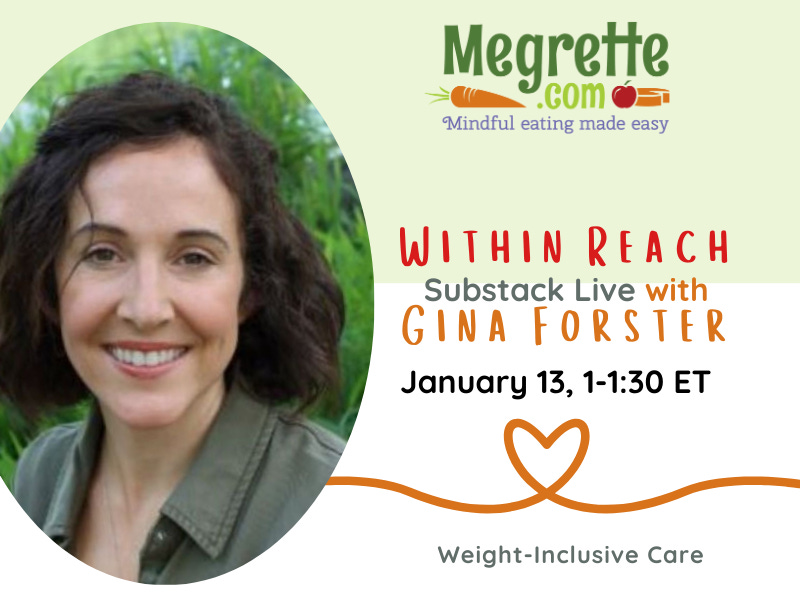 Join me on January 13, 2026, from 1:00-1:30pm ET as I chat with Gina Forster, Registered Dietitian, podcast host, and author of Within Reach: A Framework for a Lifetime of Health and Well-Being.